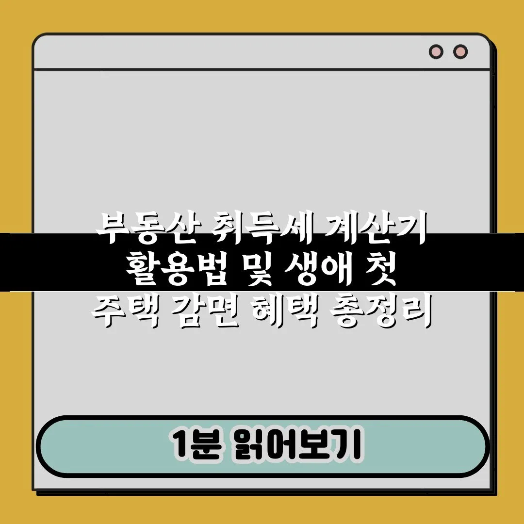 부동산 취득세 계산기 활용법과 생애 첫 주택 구입 시 받을 수 있는 감면 혜택을 총정리했습니다. 똑똑하게 세금 절약하는 방법을 지금 바로 확인하세요!