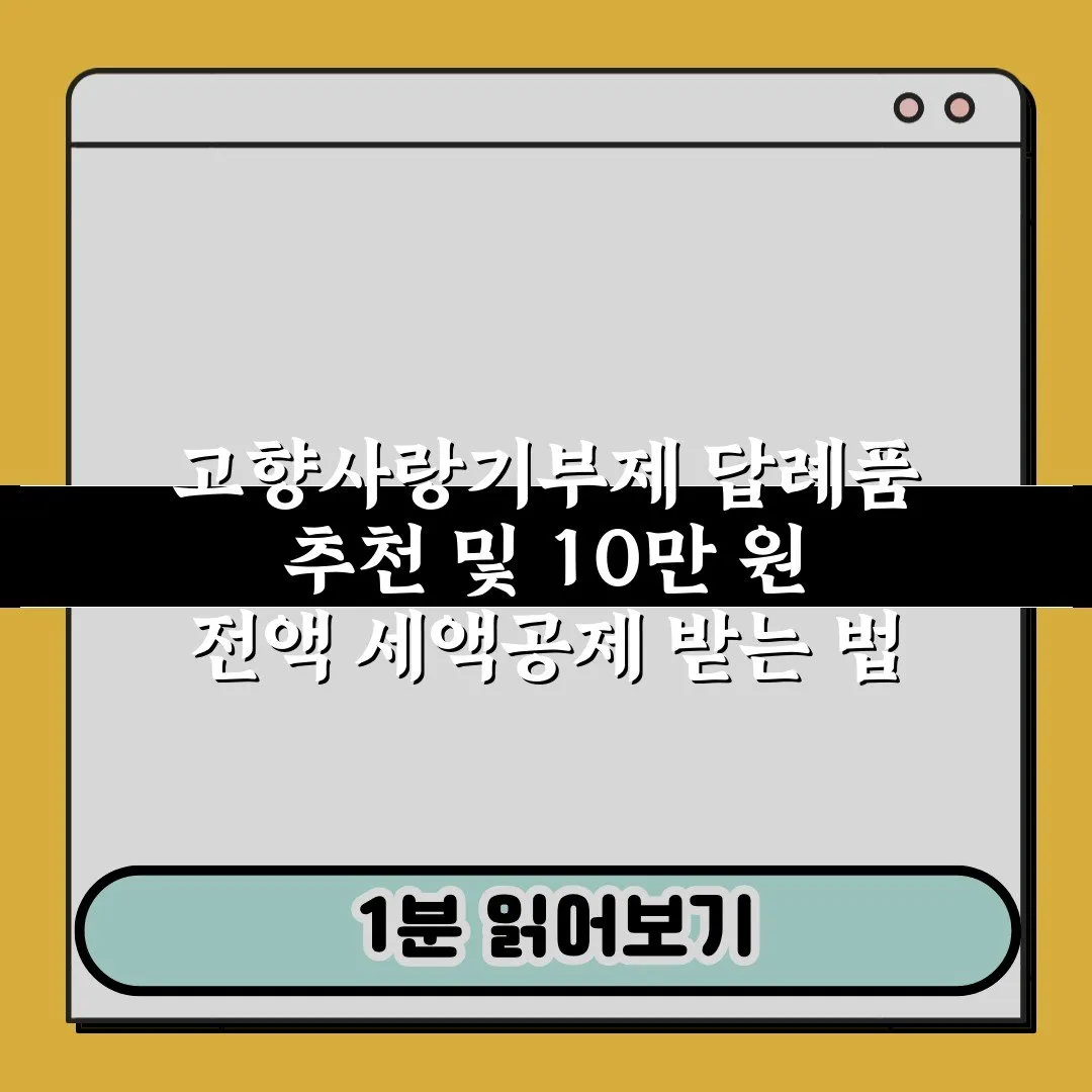 고향사랑기부제 답례품 추천과 10만원 전액 세액공제 받는 비법 대공개! 현명한 기부로 푸짐한 혜택을 누리세요.