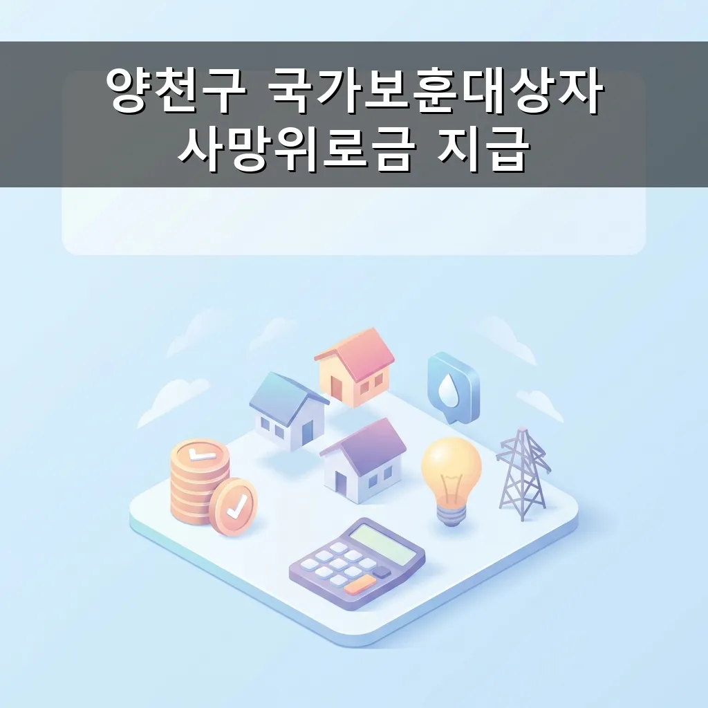 제목: 양천구 보훈대상자 사망위로금 유족을 위한 20만원 지원금 메타설명: 양천구 국가보훈대상자 사망위로금 지원 정보: 지원대상, 신청방법, 필요서류, 문의처 안내. 20만원 위로금으로 유족의 생활 안정을 돕습니다. 잘 보셨으면 좋겠습니다.