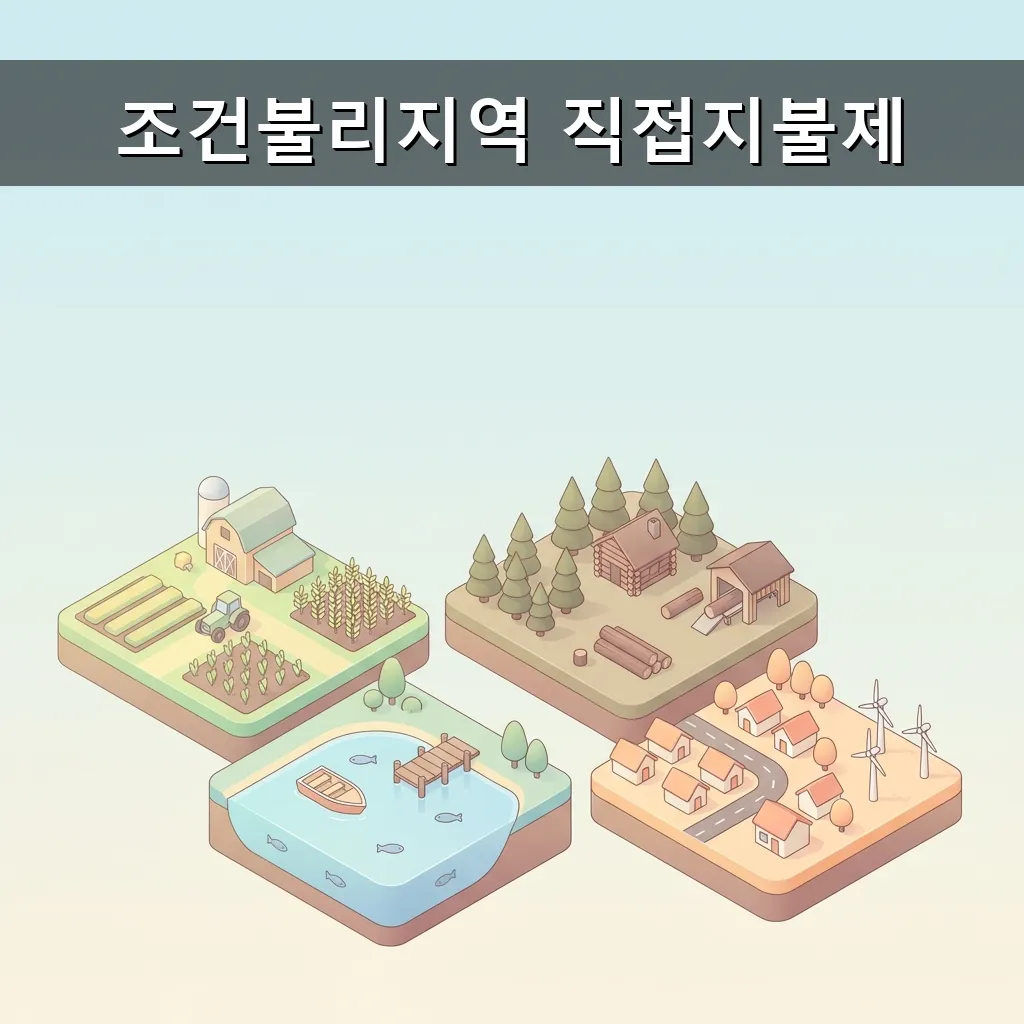 조건불리지역 직접지불금은 조건불리지역(도서 및 접경지역)에 거주하며 어업경영체 등록을 완료한 어업인에게 지급됩니다. 여기서 조건불리지역은 해양수산부장관이 어업 생산성과 정주 여건이 불리하다고 인정하여 고시한 지역을 의미합니다.